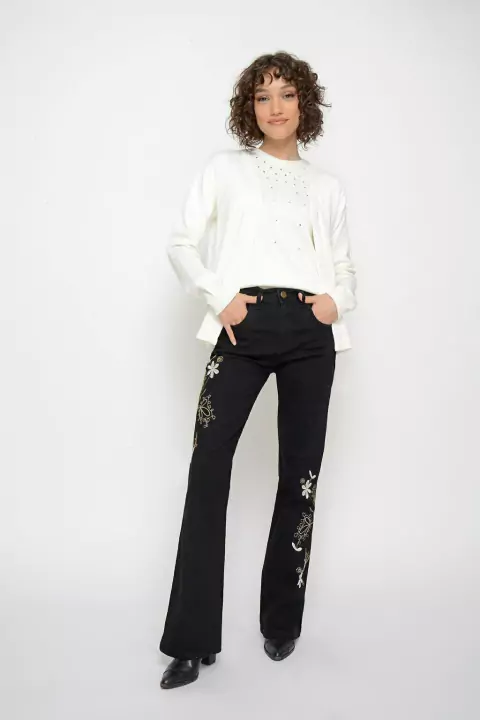 Calce: tiro alto, semi oxford, con bordados de flores en delantero